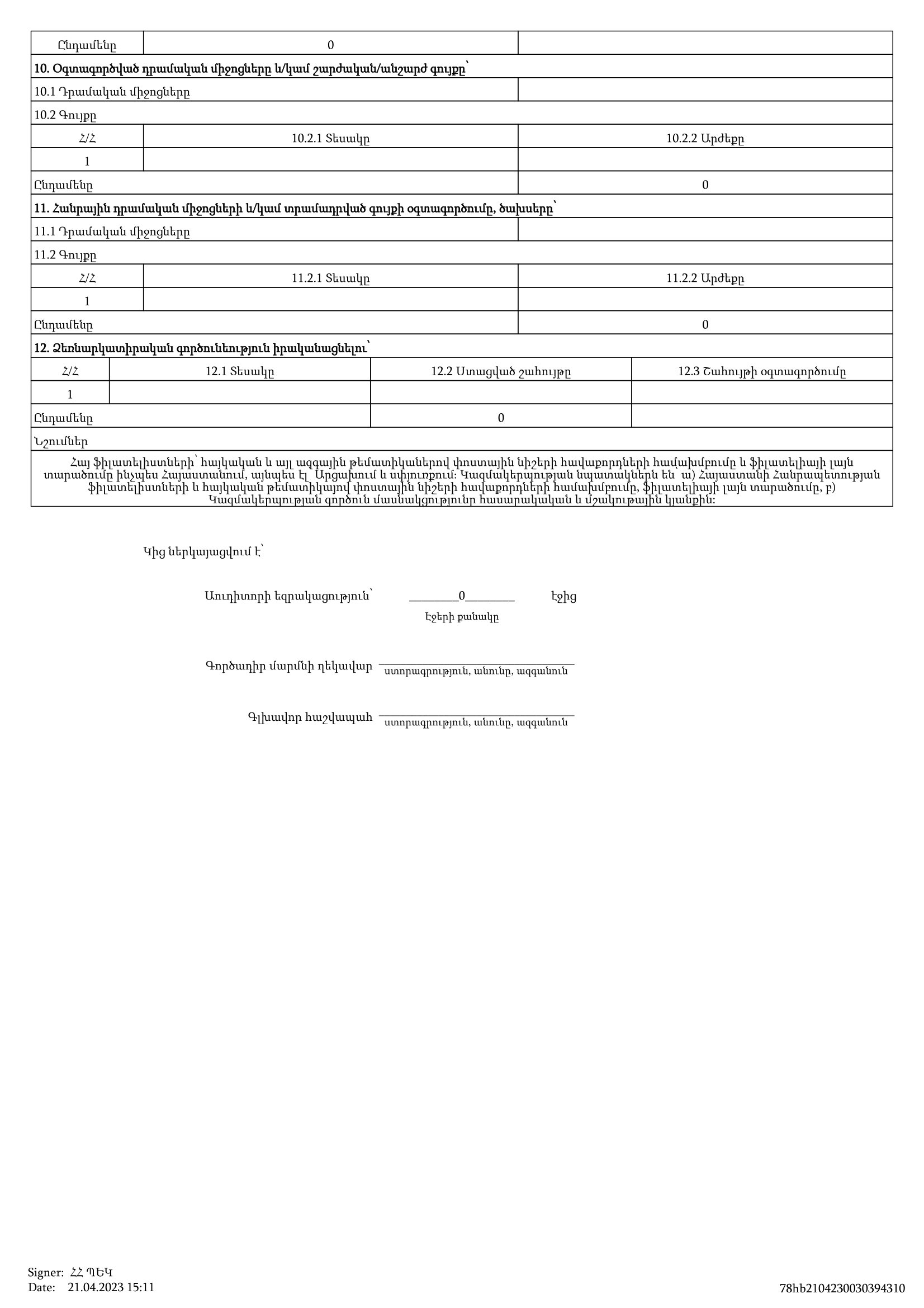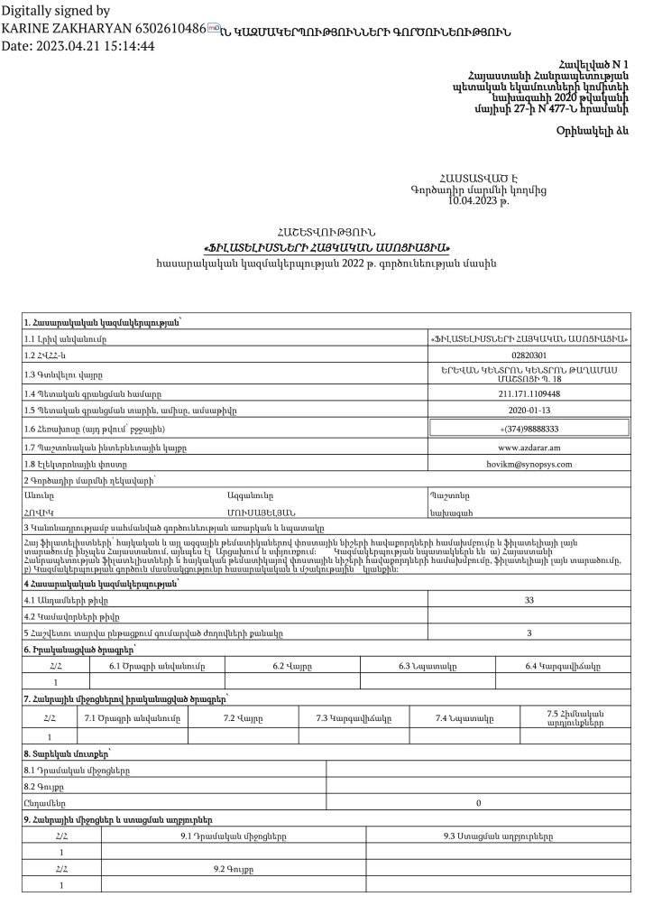 ՀԱՇԵՏՎՈՒԹՅՈՒՆ«ՖԻԼԱՏԵԼԻՍՏՆԵՐԻ ՀԱՅԿԱԿԱՆ ԱՍՈՑԻԱՑԻԱ»հասարակական կազմակերպության 2022 թ. գործունեության մասին